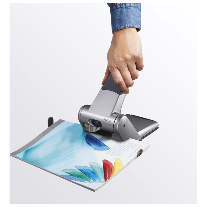 Bušač 2 rupe do 65 listova Leitz 51800184 sivi (13907). Opis: Bušilica za papir