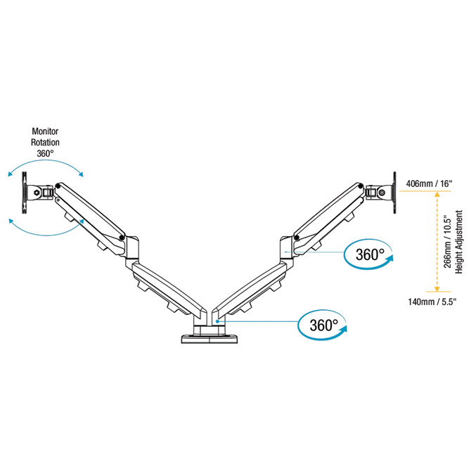 - dvije metalne ruke s podesivom visinom,drži monitore svaki do 8 kg