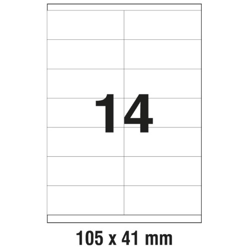 - Dimenzija etikete / ukupno / rub: 105x 41 mm / 1400 etiketa / rub samo gore i dole