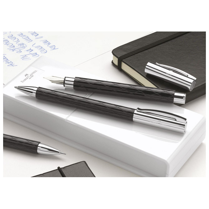 - tijelo olovke izrađeno od crne dragocjene smole visokog sjaja sa utisnutim rombovima za moderan izgled
