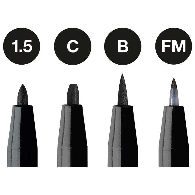- set od 4 debljine: 1,5 mm, C (za kaligrafiju), B (brushpen) i FM (Fude medium) / 199 (crna)