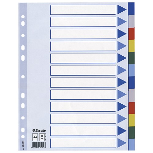 Pregrada plastična A4 kolor 12listova Esselte 15262 (13496). Opis: PREGRADA PLASTIČNA