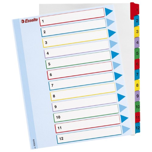 Pregrada kartonska presvučena filmom A4 kolor 12l Esselte 100209 (1199). Opis: PREGRADA KARTONSKA – PREGRADNI KARTON SPECIJALNA