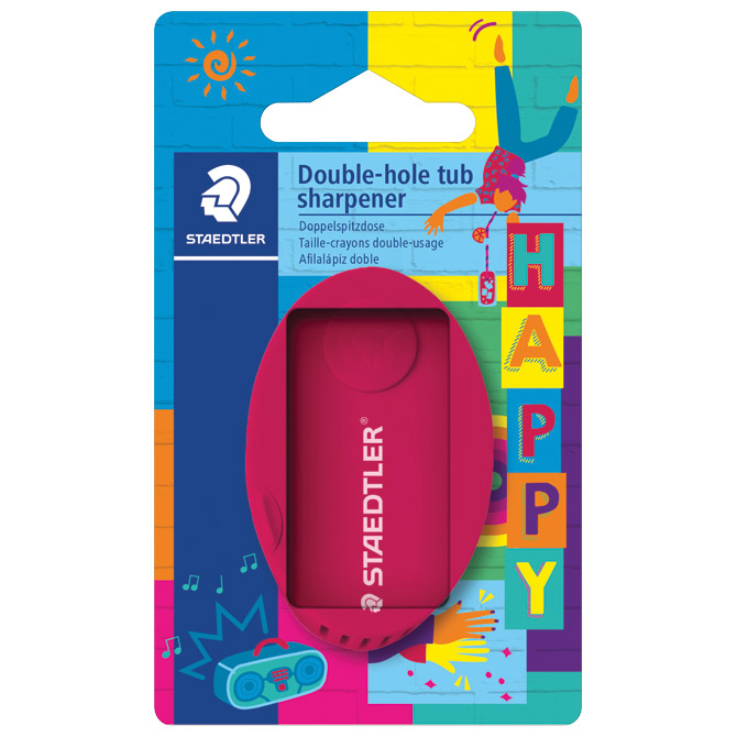 Šiljilo metalno s PVC kutijom 2rupe happy Staedtler 512ps2bkha blister (49127). Opis: ŠILJILO