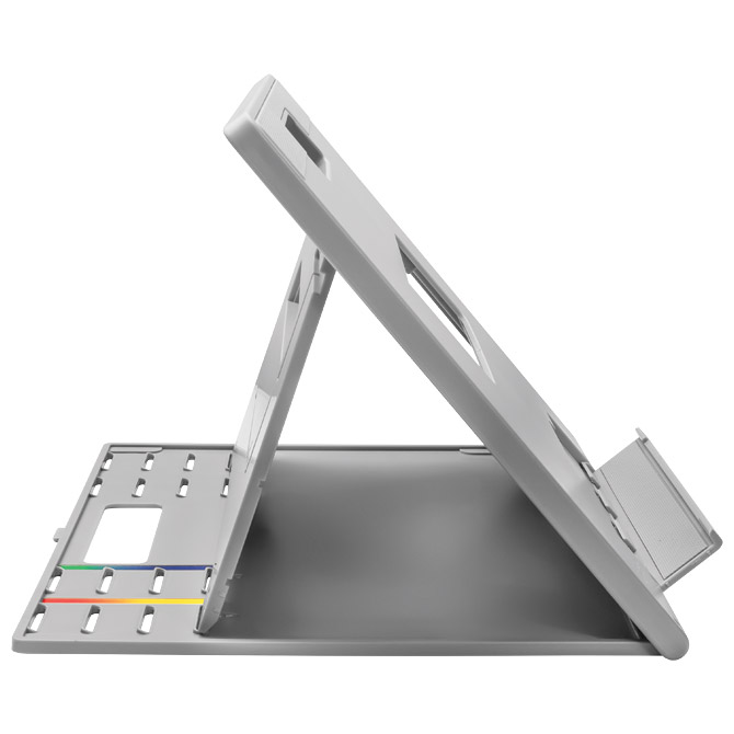 - potiče pravilno poravnanje očiju i podržava udobnost vrata i ramena uz istovremeno održavanje unutarnje komponente prijenosnog računala hladnima