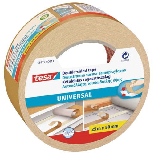 Traka ljepljiva obostrana 50mm/25m universal tesa 56172-00013 bijela (47767). Opis: TRAKA LJEPLJIVA OBOSTRANA