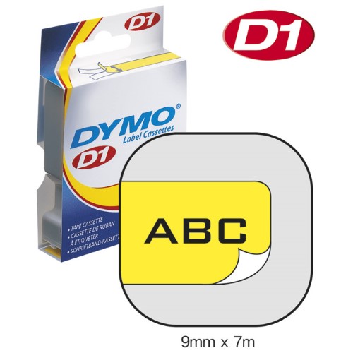 VRPCA D1 9 mm x 7m DYMO 40918 CRNO-ŽUTA (13486). Opis: VRPCA